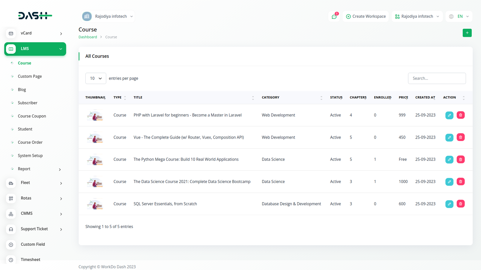 Easily organize all your courses by dividing them into distinct course categories. Easily manage all the courses in your store. Keep your inventories in a single tab and manage every aspect of your courses. View course details like names, prices, categories, qualities etc.