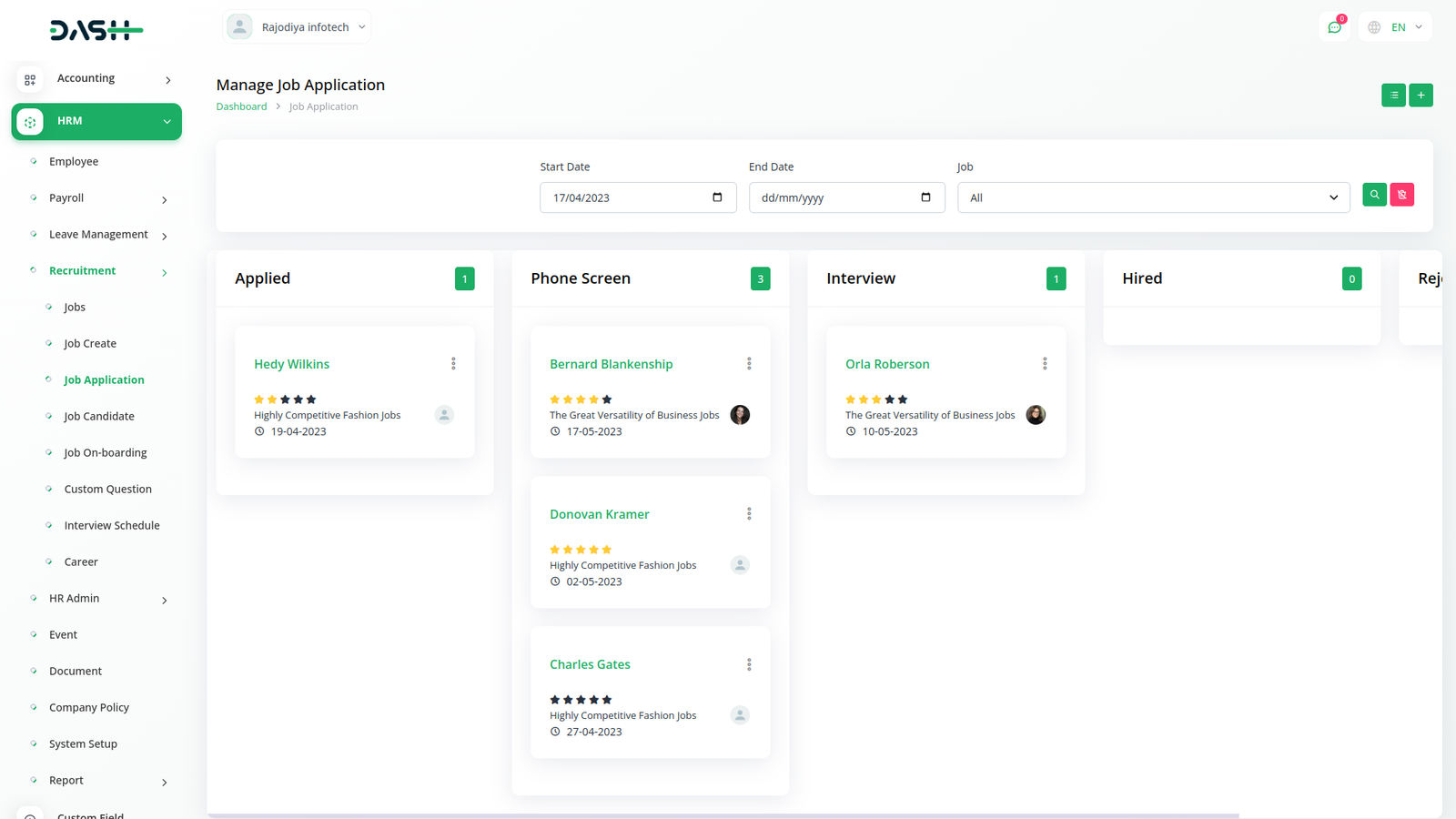 Speed up your hiring process. Use built-in hiring features to create and manage new job openings and fill your open positions faster.Depending on Hrm Module.