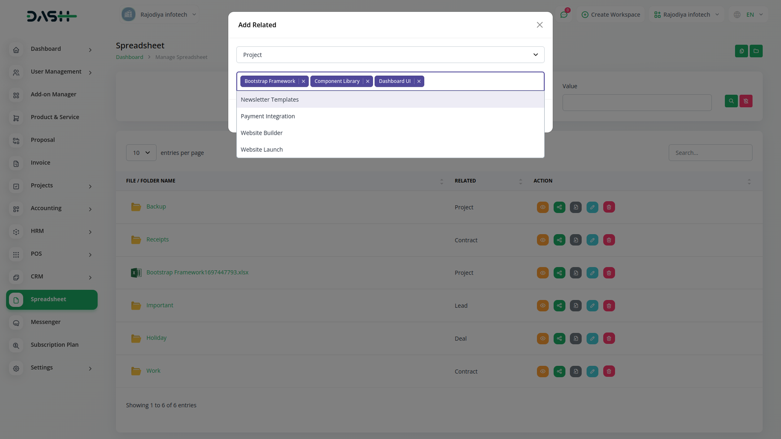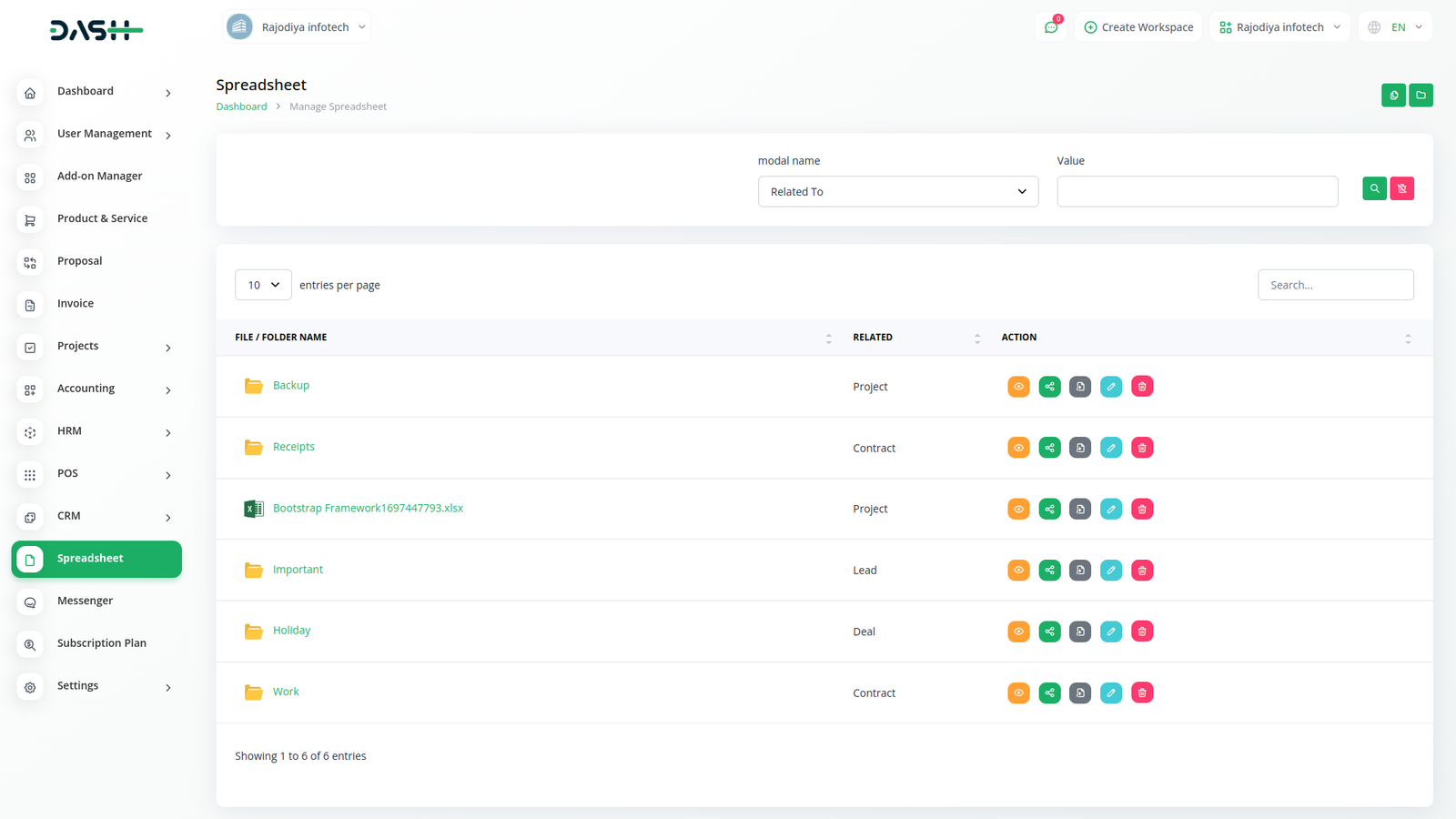 You can create subfolders within folders and share them with users. Also associate various modules like projects, leads, deals, contracts, etc., with these folders to organize related data. Additionally, you can share the folder directly within these modules for easy access, streamlining data management and collaboration.