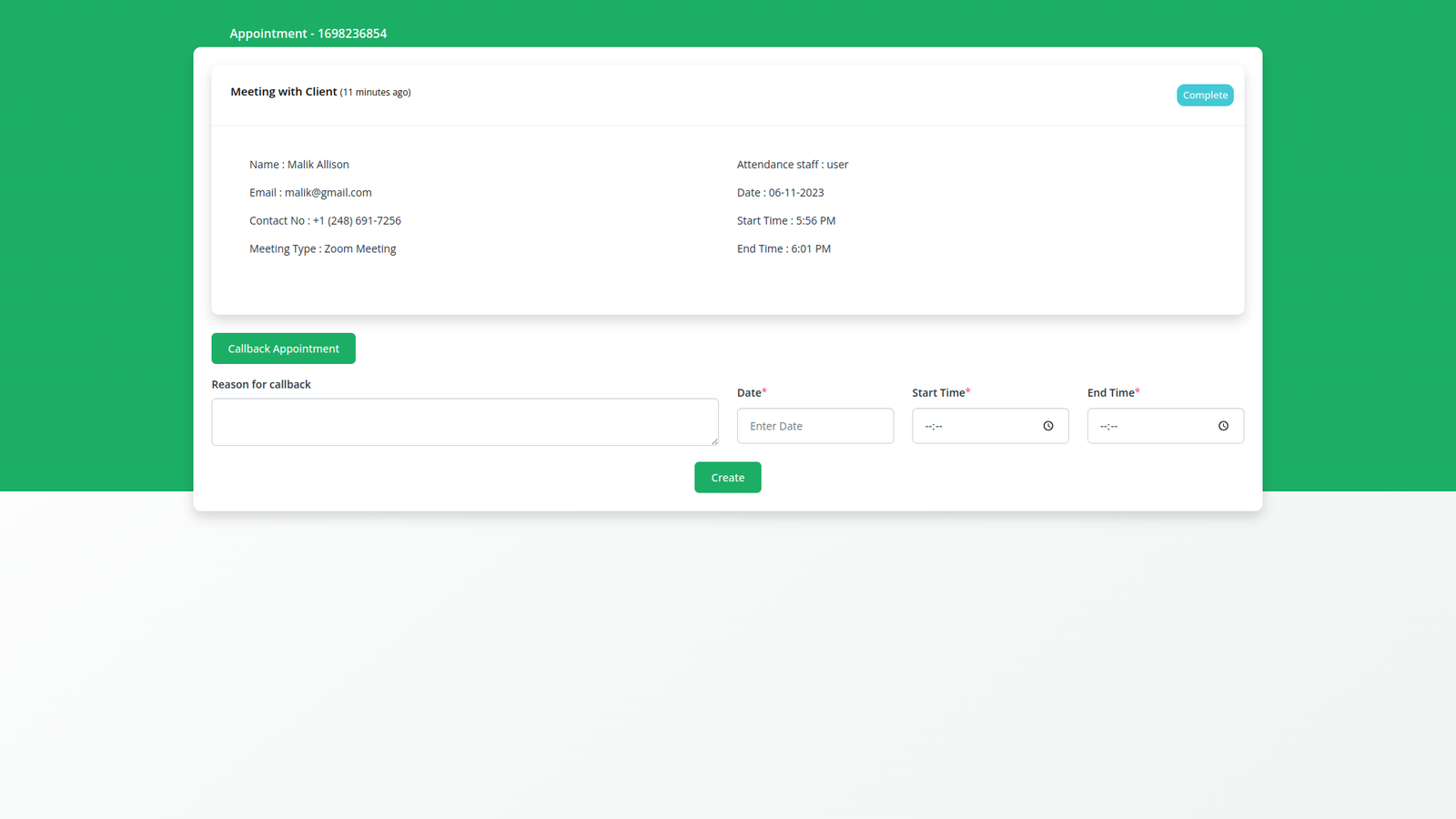 Manage Appointment Callback