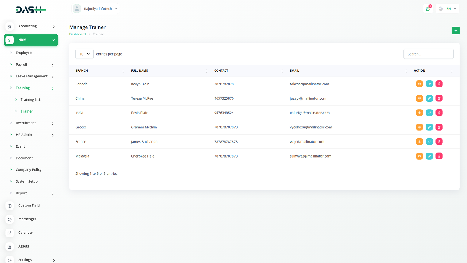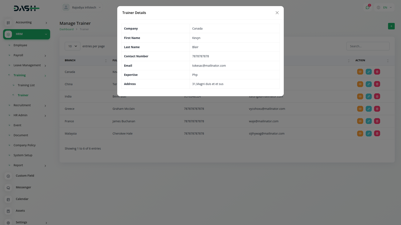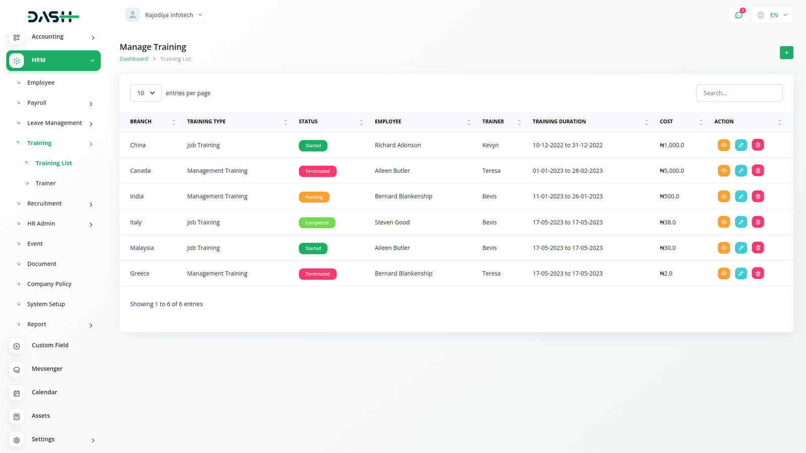 Employee training is quintessential in modern organizations. You can keep a tab on training activities by assigning a cost, duration, training, and training mode for each employee. Keep the list of your trainers handy through the easy listing.